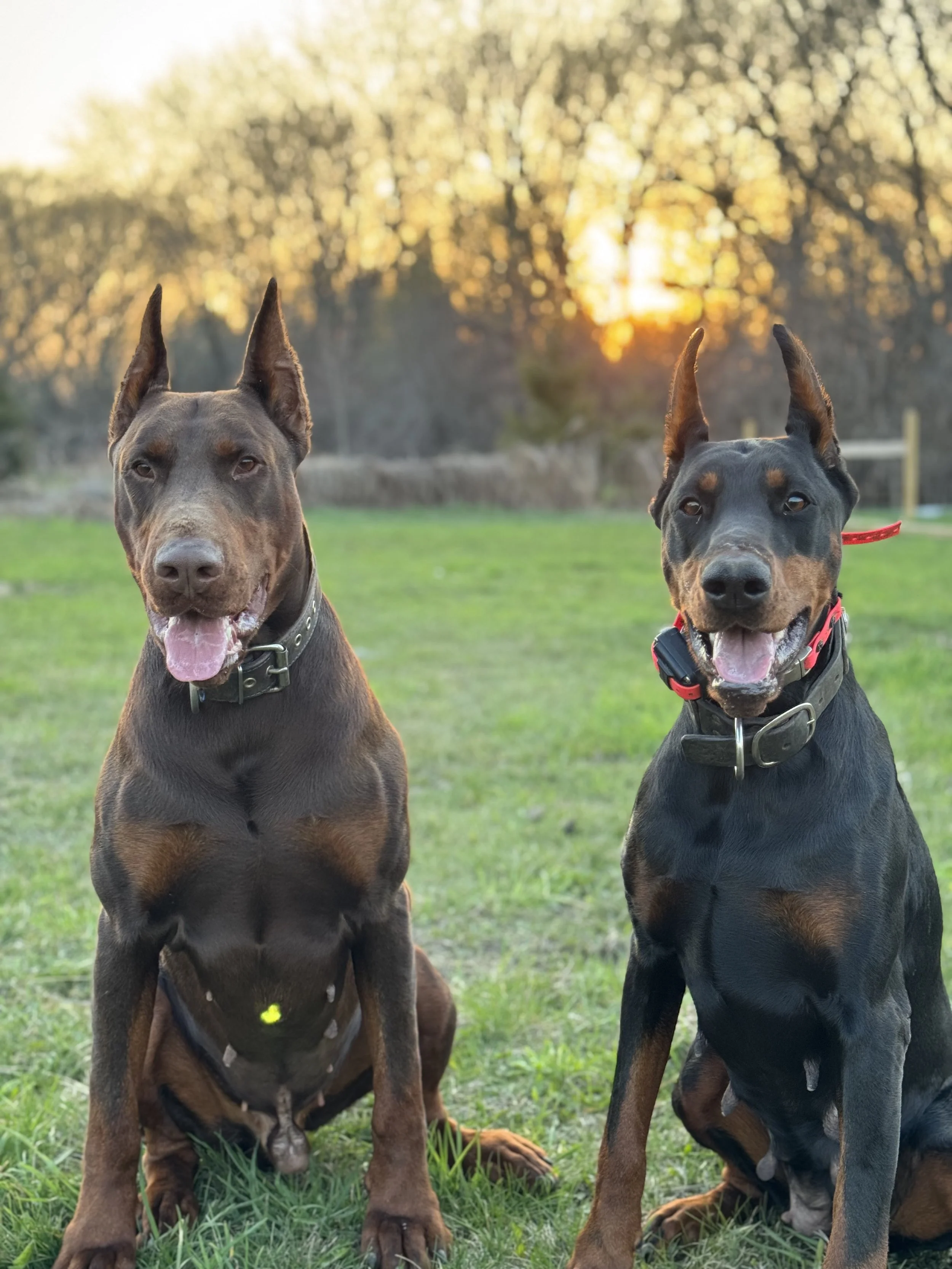 With extensive knowledge in Dobermans, veterinary medicine and training, Andrew and Sam started Black Hill Dobermans. A large focus is put on pedigrees, with a strong understanding of temperament, looks, and genetics. With the intent to better the breed, and continue the work from previous breedings, the Dobermans chosen for the program at Black Hill are carefully handpicked. Black Hill Dobermans follows the Orthopaedic Foundation of America, with a focus on gold-standard health testing previsions. The Dobermans brought into the program are both FCI and CKC registered. Full health testing includes annual heart screenings (Echo and Holter), full blood work, OFA hip screening, DNA testing for Thyroid, and vWD. They are regularly vet checked, fully vaccinated, and are on regular deworming/flea and tick prevention.